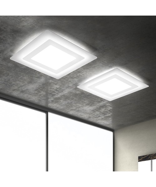 Modern LED ceiling lamp in painted metal and central diffuser in white methacrylate. Integrated LED of 30w of consumption that develops a luminous flux of about 270w. Thanks to the extreme versatility of use, this ceiling light can be installed in the kitchen, or in bedrooms, in a predominantly modern and contemporary style. The Oblio ceiling lamp has a variation in light intensity from warm light 3000°K to cold light 4000°K.