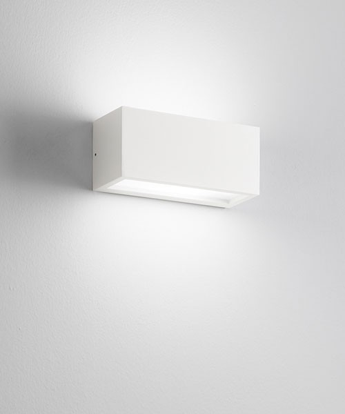 ISyluce metro 533 outdoor wall lamp. LED wall lamp with aluminum structure, epoxy paint. Available in 3 colors: sandblasted white, sandblasted anthracite, sandblasted corten, sandblasted black.max 20 W LED. Mounting in wall adherence via metal support. Direct light. Compatible with classy bulbs A A G. Bulb not included.