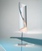 Knikerboker Hué. Table lamp in glossy steel. Colors avalaible: chrome/white, shiny black nickel/white, matt black nickel/white, gold leaf, silver leaf, total white, matt black, sil