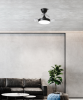 Perenz Mini Open+ 7210 B/N CT Plaphon LED Fan powder coated metal with 3 acrylic concealed blades. Satin acrylic diffuser. Available in two color versions: matt white; matt black. Radio remote control included. Two extension rods 12cm and 25cm included. CCT technology to choose the color variation of light: 3000K, 4000K and 6000K. DC Motor Energy Saving technology.
