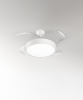 PERENZ Open+ Plaphon LED Fan in painted metal with 4 transparent acrylic folding blades - satin acrylic diffuser. Available in matt or black white. Radio remote control included. Two extension rods 12cm and 25cm included. CCT technology to choose light color variation: 3000K, 4000K and 6000K.