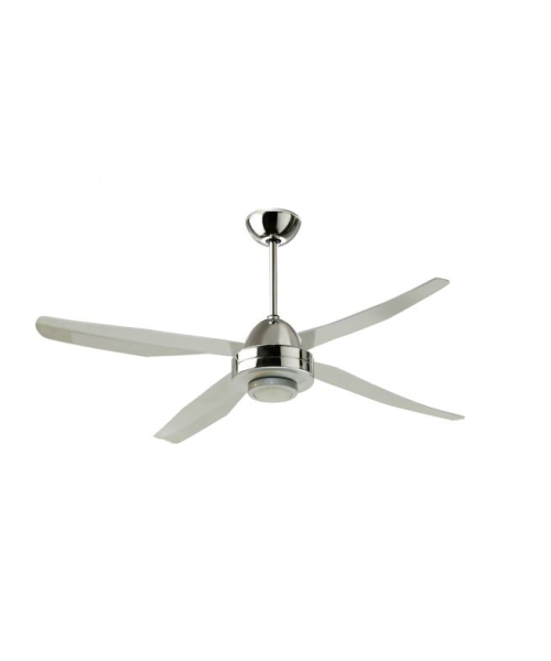 Ventilatore da soffitto Italexport collezione Libellula con luce a LED. Corpo in metallo verniciato con polveri epossidiche, finitura Grigio (1212), Bianco (1214) oppure Cromo (1209). 4 Pale in finitura trasparente. Con kit luce Power LED da 17w
