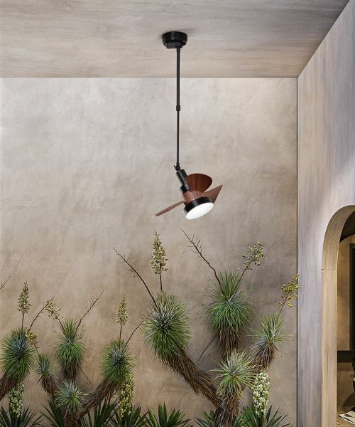 PERENZ Eddy 7206 N CT Ventilatore con struttura in ABS con 3 pale in acrilico. Diffusore in acrilico satinato. Attacco E27. Disponibile in 2 colori: bianco con pale noce chiaro e nero con pale noce scuro.
